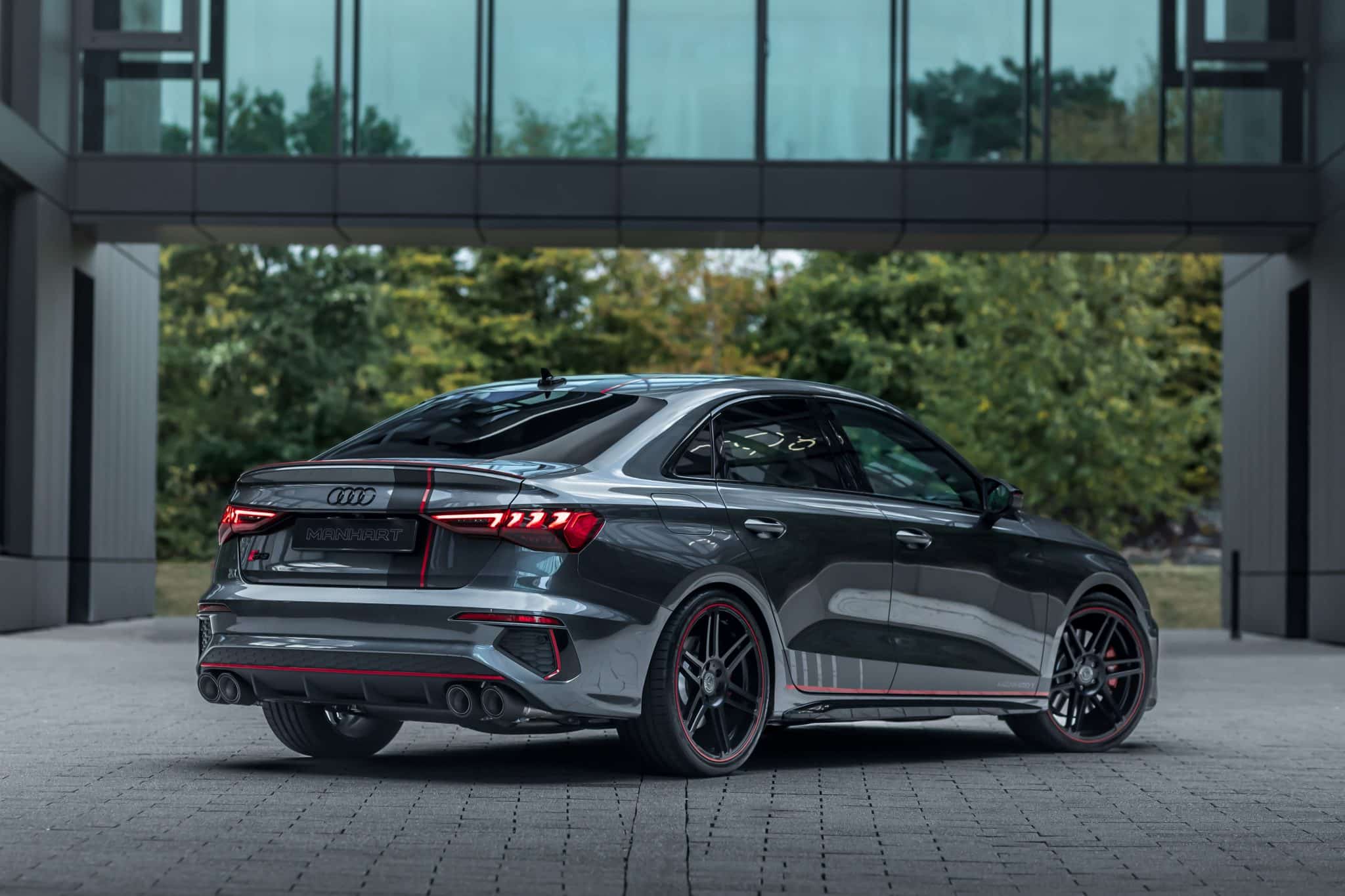 Doch auch der nach wie vor darunter angesiedelte Audi S3 ist keineswegs zu unterschätzen. Umso mehr gilt dies, nach dem Upgrade durch MANHART Performance, welche das Potenzial des Einstiegs-Sportmodell der A3-Baureihe fachkundig ausgenutzt haben.