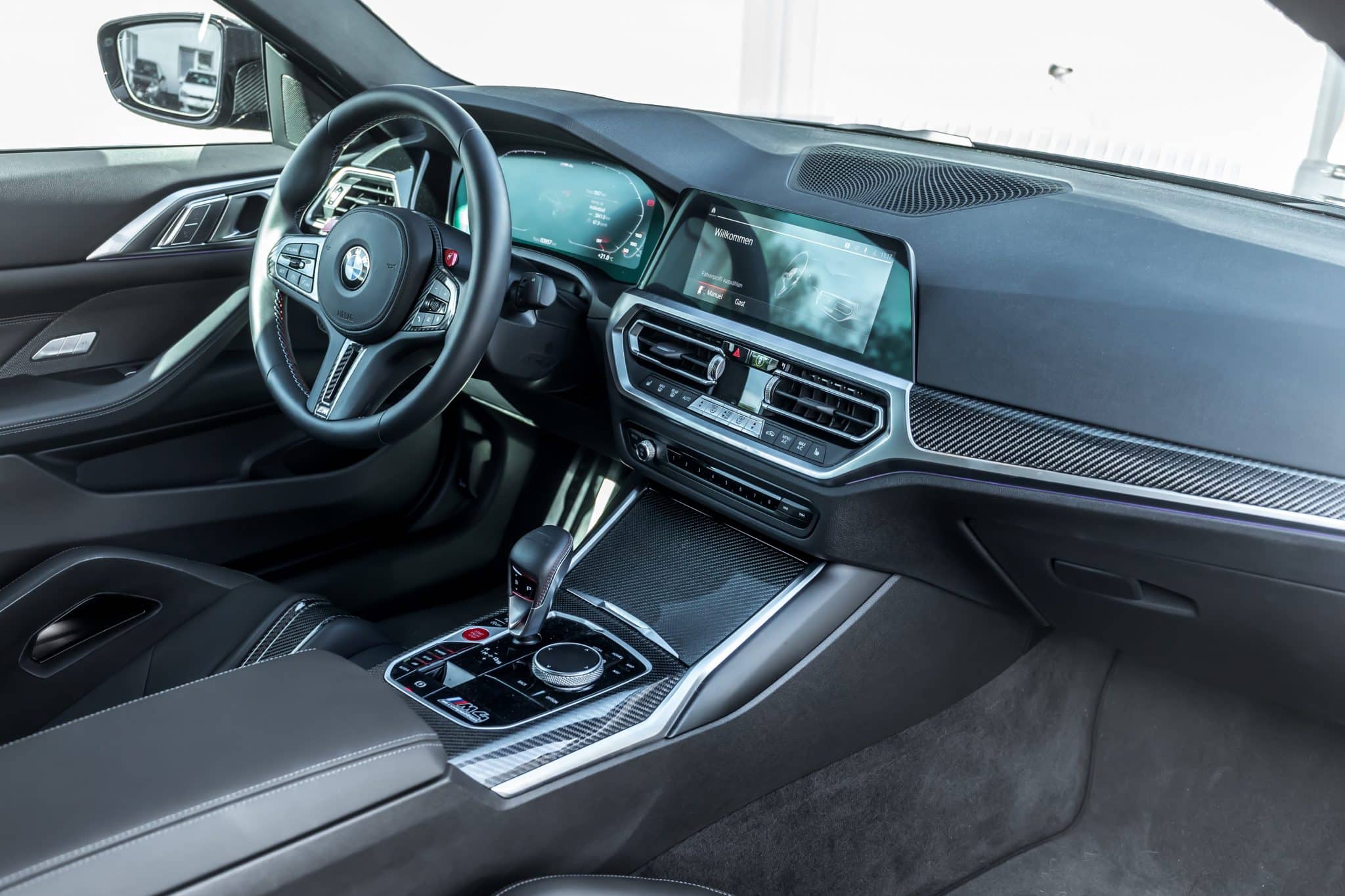 Ebenfalls im ohnehin schon sehr ansehnlich und mit reichlich Carbon-Elementen ausgeführten Serienzustand verblieb der Innenraum des sportlichen Zweitürers.