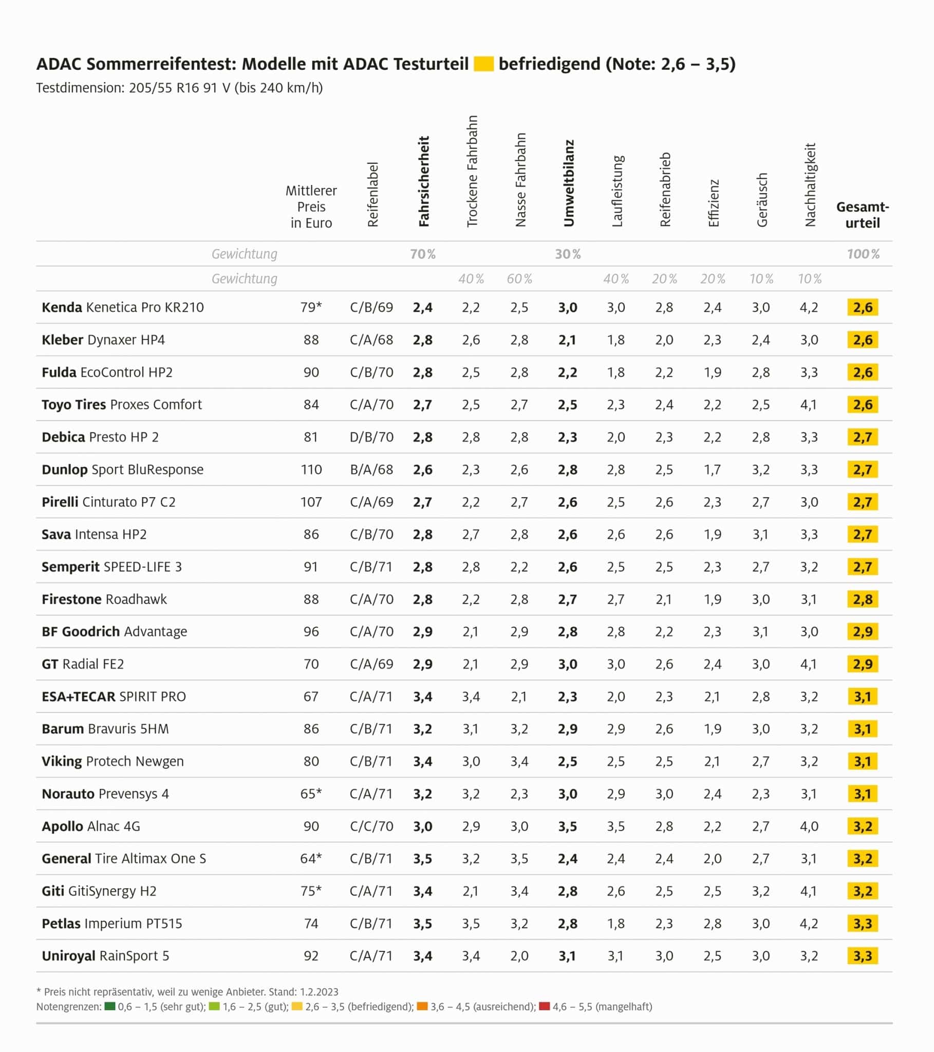 Sommerreifen Test 2023 jetzt mit nachhaltiger Produktion als Kriterium