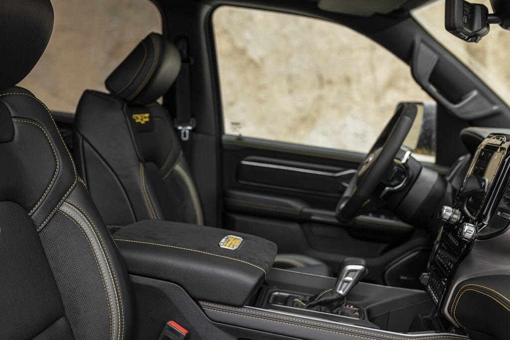 Der mit Vollleder, Karbonelementen sowie reichlich Alcantara ausstaffierte US-Truck macht einen gediegenen Eindruck. Als weitere Besonderheit verfügt die Sonderedition über schwarze Sitze mit gelben Nähten nebst gestickten TRX-Logo an den Lehnen, während auf der mit Alcantara bezogenen Mittelkonsole eine spezielle Plakette prangt, die auf das exklusive Sondermodell hinweist.