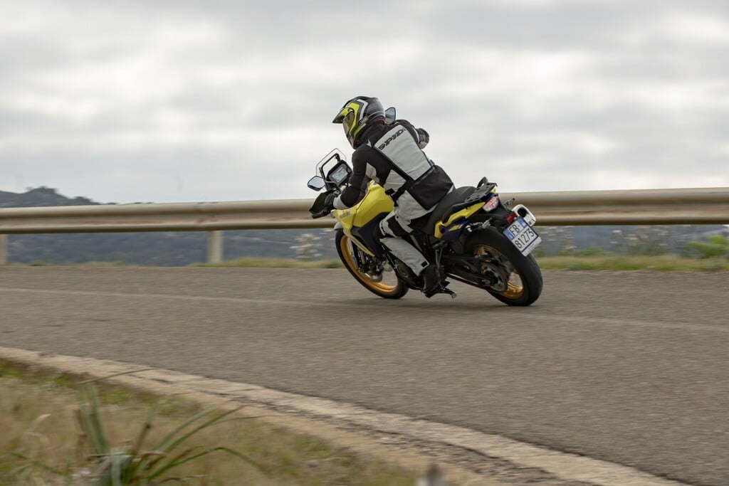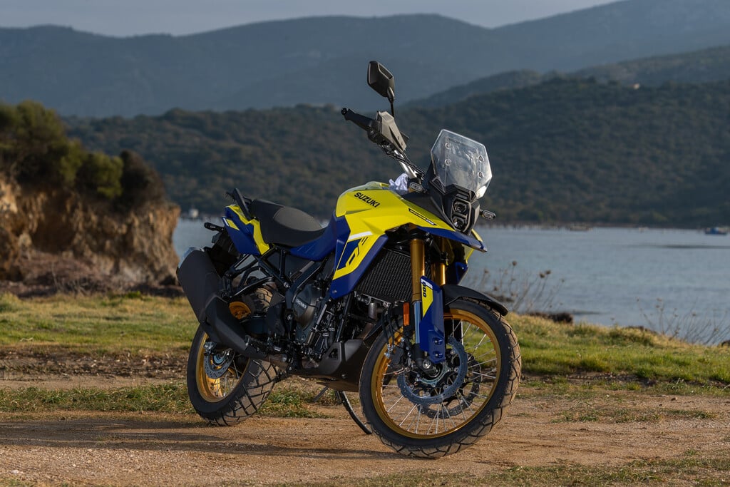 230 Kilo Leergewicht wollen im Stand gehalten werden. Direkte Wettbewerber wie die Yamaha Ténéré 700 wiegen nur 203 Kilogramm, die neue Transalp kommt auf 208 Kilo. Dennoch fühlt sich die Suzuki leicht und ausgewogen an – erst recht im Vergleich zur 252 Kilogramm schweren V-Strom 1050 DE.