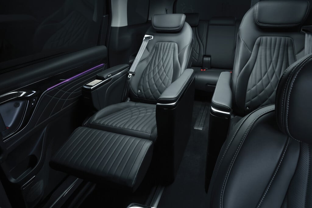 Dazu kommen 360-Grad-Kamerasystem und zusätzliche Einparkhilfen auch vorne. Für Fahrer und Beifahrer gibt es elektrische einstellbare Sitze inklusive Lendenwirbelstütze, in Reihe zwei halten Massagefunktion, Sitzheizung und -belüftung Einzug. Heckklappe und seitliche Schiebetüren öffnen elektrisch.