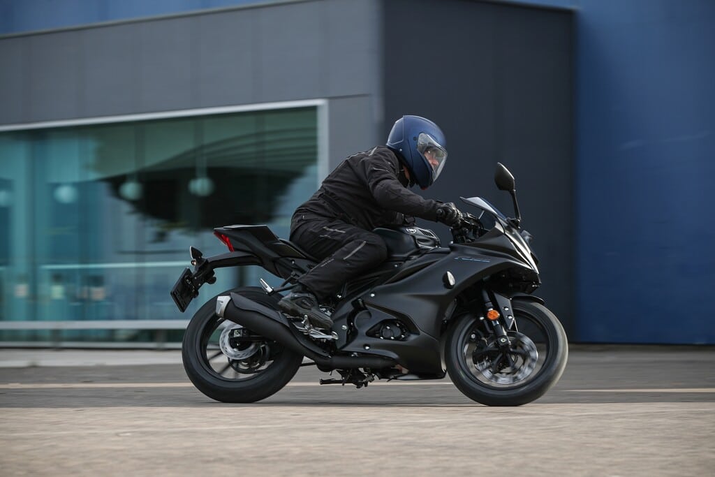 Der Winkel der beiden Lenkerstummel wurde um zehn Grad erweitert, was für eine deutlich entspanntere Armhaltung sorgt. Optisch präsentiert sich die kleine Supersportlerin ebenfalls neu. Sie rückt mit ihrer neuen Verkleidung designerisch viel näher an die große R1 heran.