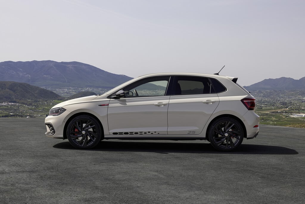 Ein Sportfahrwerk, die Differenzialsperre XDS, eine umfangreiche Serienausstattung und spezifische Designmerkmale wie schwarze Alufelgen, Dach und Außenspiegel oder Sportsitze mit perforiertem schwarz-roten Leder heben das Jubiläumsmodell VW Polo GTI Edition 25 von den übrigen Polo-Modellen ab. Die limitierte Auflage spiegelt sich in den Einstiegsleisten im „One of 2500“-Logo wider.