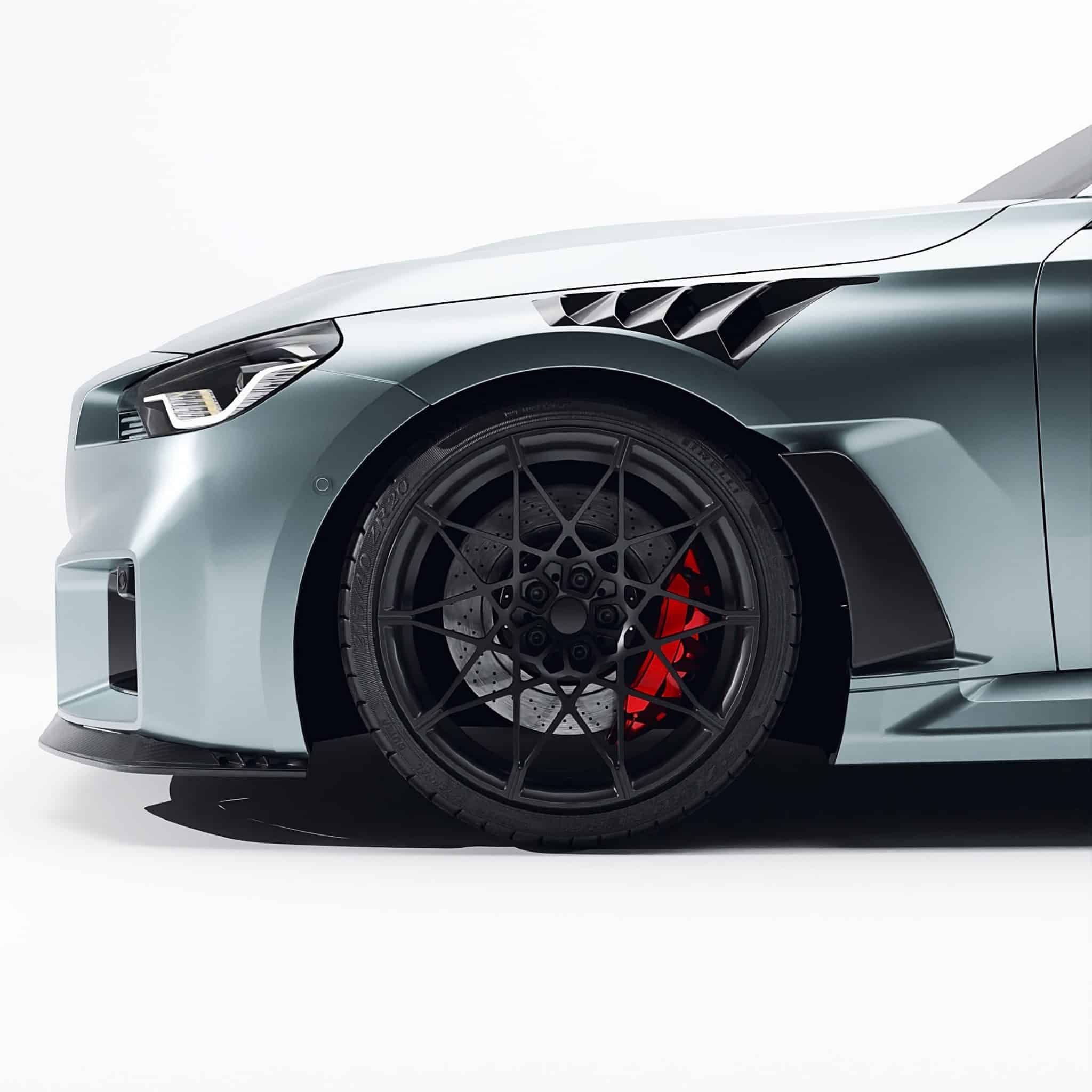Weiterer Hingucker sind zudem die komplett neuen vorderen Kotflügel mit obenliegenden Entlüftungen und Variante 4-Blades hinter der Achse. Abrundend kommen ein Unterboden, ein Engine Cover und Brake Ducts sowie ab Ende 2023 auch Gurneys aus Carbon hinzu.