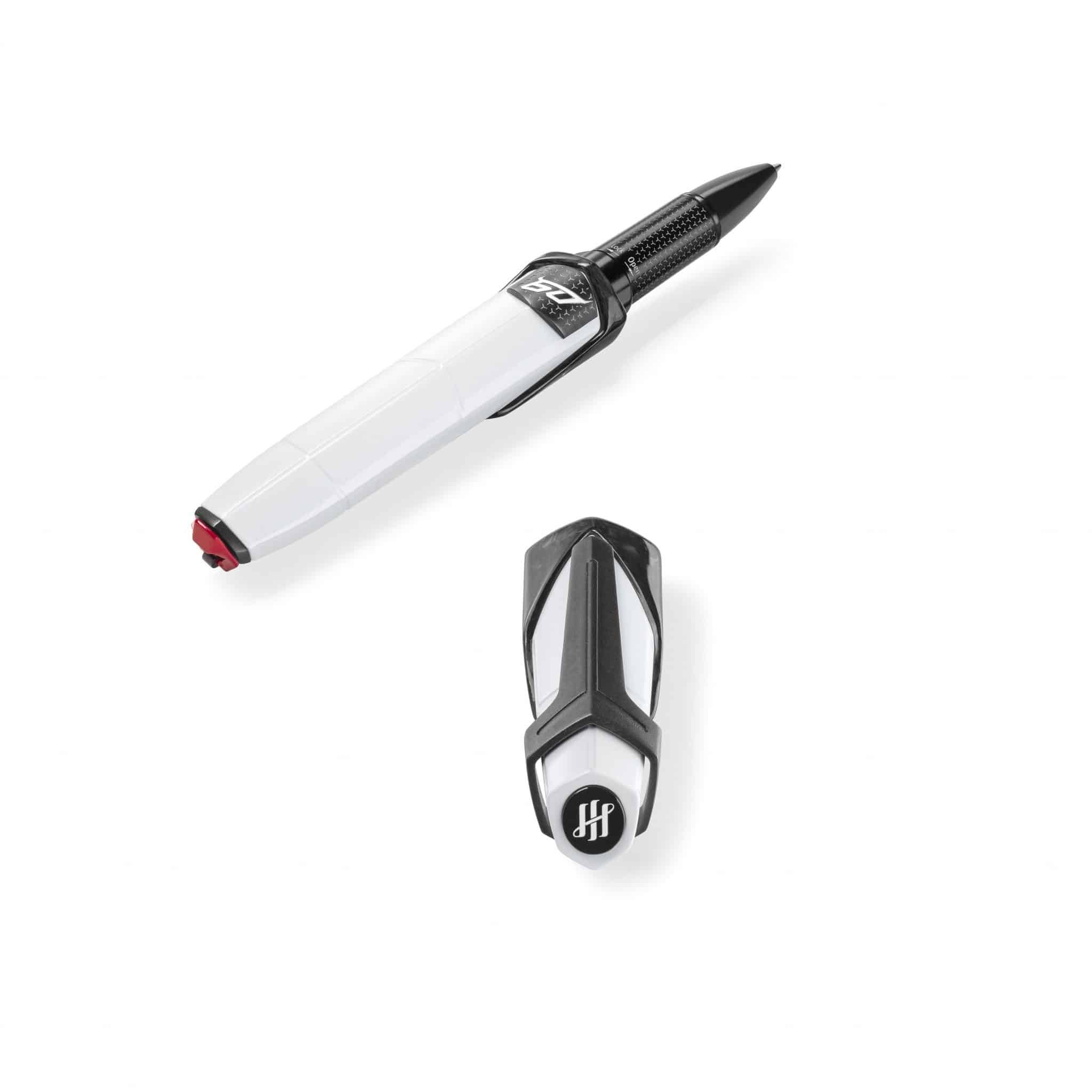 In Anlehnung an die ikonischen, von der Luftfahrt inspirierten roten Startknöpfe weisen die Stifte auf der Rückseite einen roten Schnappschalter auf. Dieser aktiviert einen in das Luxus-Schreibgerät integrierten Mechanismus.