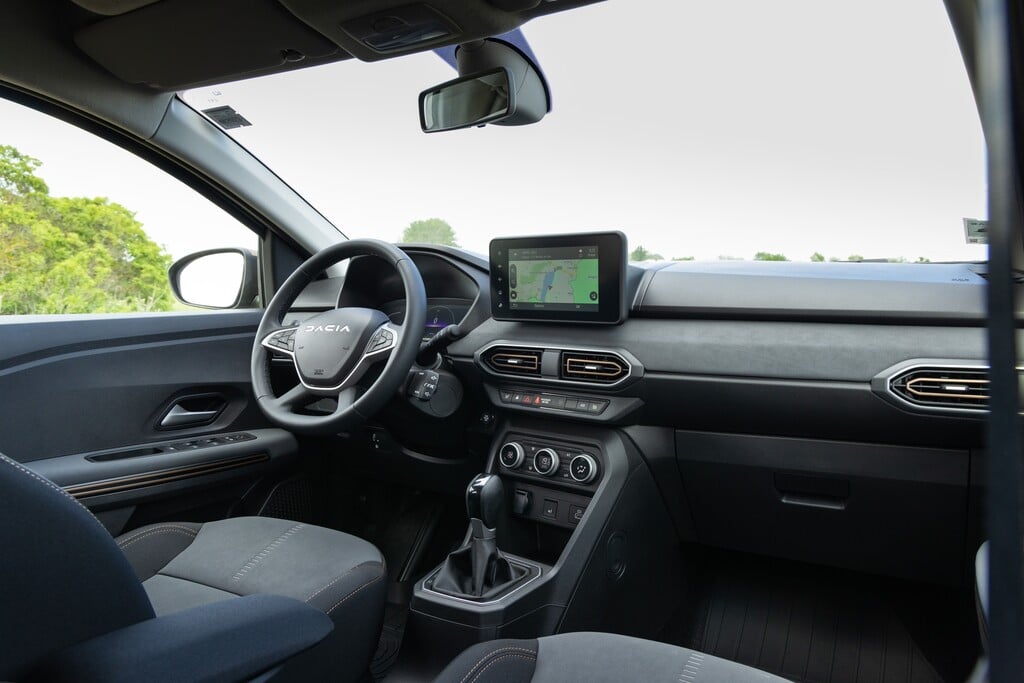 Die beiden zusätzlichen Passagiere nehmen auf Einzelsitzen Platz die sich leicht verstauen lassen, und die auch für erwachsene Menschen geeignet sind.Im Innenraum zeigt sich auch, warum Dacia ein Angebot für preisbewusste Kunden ist.