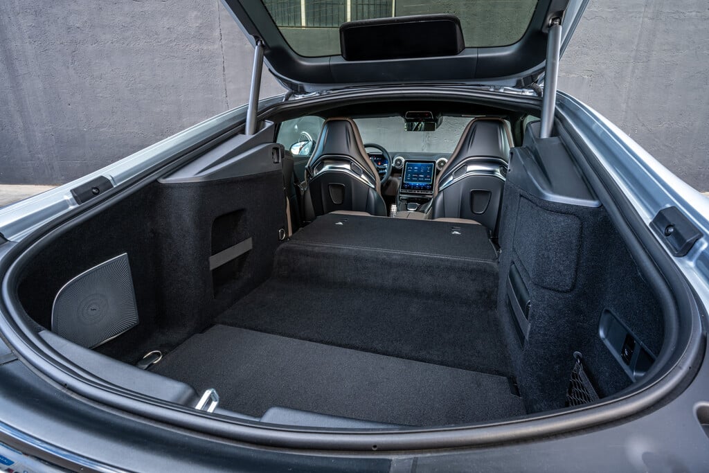 Das Auto folgt mühelos dem Dirigat des Fahrers, lädt den Könner dazu ein, in engen Kurven mit dem Gaspedal zu spielen. Das alles bleibt wunderbar leicht beherrschbar. Und natürlich kann man den GT auch ganz defensiv fahren, über lange Strecken und mit jedem Komfort, den ein Mercedes der oberen Kategorie heute bietet. Hinter Fahrer und Beifahrer ist Platz für Gepäck – oder für zwei Mitfahrer, die aber nicht größer als 150 Zentimeter sein sollten.