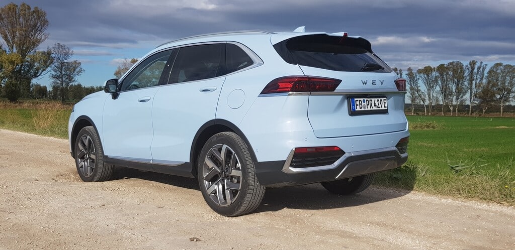 Der 20 Zentimeter kürzere Wey 03 besitzt nur in der Topversion einen Allradantrieb, bei dem die beiden E-Maschinen im Zusammenspiel mit dem Verbrenner aber ebenfalls die üppige Systemleistung von 325 kW (442 PS) und ein maximales Drehmoment von 685 Nm generieren. Mit 5,3 Sekunden ist er damit im Standardsprint und in der Spitze (230 km/h) nur unwesentlich langsamer als der große Bruder.