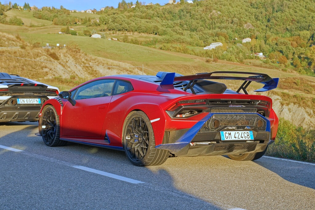 Das Einlenkverhalten ist ausgesprochen agil, die Bremsen sehr giftig. Der Trofeo-Modus ist für öffentliche Straßen eigentlich zu brutal. Dass die Vmax mit 310 Km/h um 15 km/h unterhalb der Modelle Evo und Tecnica liegt, ist der Aerodynamik und hier besonders dem großen Heckspoiler geschuldet, der auf der Piste für den nötigen Abtrieb sorgt. Der STO ist als legitimer Nachfolger des früheren Huracán Performante positioniert.