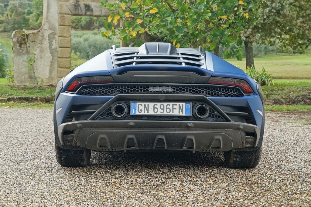Die Extra-Zentimeter bringen erstaunliche Übersichtlichkeit, und schon auf den ersten Kilometern ist zu spüren, dass dieser Huracán sehr eigenständig ist. Mit den höheren Gummiflanken und seiner spezifischen Fahrwerksabstimmung ist der Sterrato erheblich komfortabler als seine Schwestermodelle. Mit dem weicheren Ansprechverhalten von Lenkung, Bremsen und Dämpfung ist der Sterrato der wohl alltagstauglichste Huracán. Für einen besseren Drehmomentverlauf wurden in der Spitze 30 PS gekappt, was ihn landstraßen- und geländetauglicher macht.