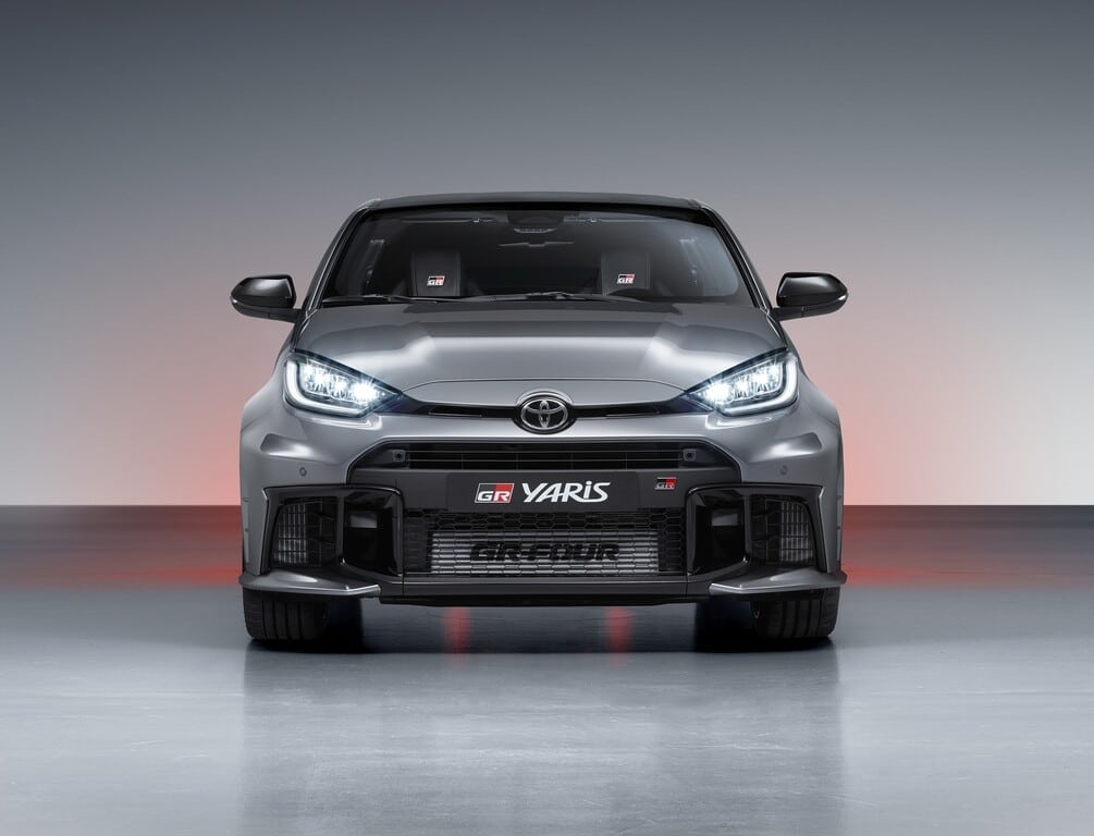 Das Fahrwerk des kleinen vier Meter langen Allrad-Sportlers Toyota GR Yaris wurde weiter verstärkt. Das einst optionale Performance-Kühlerpaket, das einen zusätzlichen Kühler, ein Ladeluftkühler-Spray und einen modifizierten Lufteinlass umfasst, ist jetzt Serie.