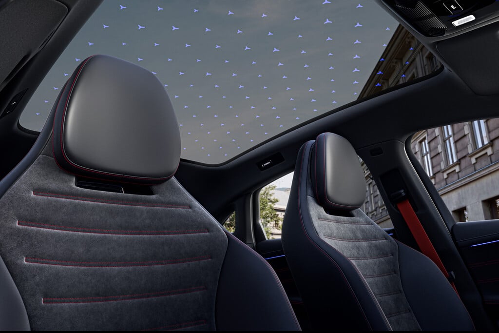 Das serienmäßige Panoramadach verbessert zudem die Kopffreiheit vorne und hinten und gegen Aufpreis lässt sich der Lichteinfall auf die individuellen Ansprüche einstellen. Zusammen mit der Ambientebeleuchtung erstrahlen nachts bei Bedarf 162 Sterne über den Insassen. Wer`s braucht…