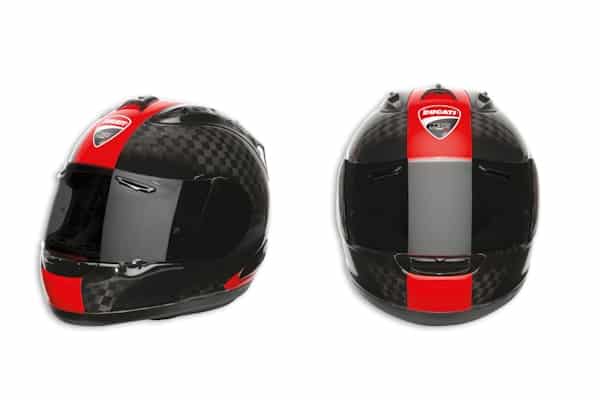 Der Helm besteht aus reinem Carbon und ist mit gerade mal 1300 (+/-50) Gramm ein echtes Leichtgewicht, das für den europäischen Markt nur 300 mal produziert wird. Exklusiv für Ducati wird das Prachtstück im Corse Design handbemalt. Darüber hinaus lackiert Arai auf der Rückseite nach den Wünschen des Käufers jede beliebige Grafik.