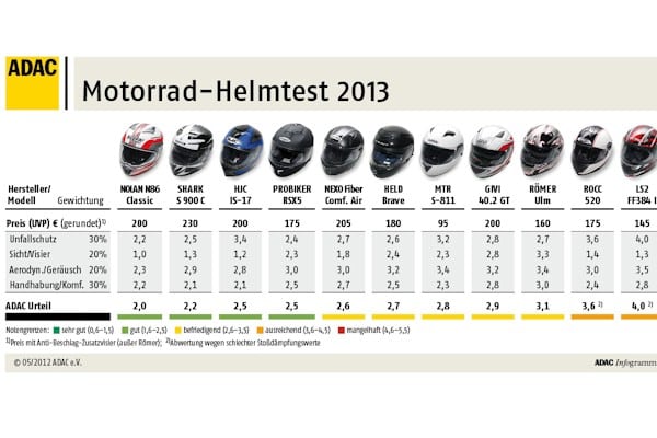 Tourensporthelme für Motorradfahrer müssen wahre Alleskönner sein – ein Grund für den ADAC, elf aktuelle Modelle mit Basispreisen von 70 bis 230 Euro zu testen. Testsieger ist der Nolan N 86 Classic vor dem Shark S 900 C. Beide Helme bieten neben tauglichem Unfallschutz und guter Sicht auch einen hohen Tragekomfort. Testverlierer sind der ROCC 520 und der LS2 FF384 II, die im Unfallschutz nicht überzeugen konnten.