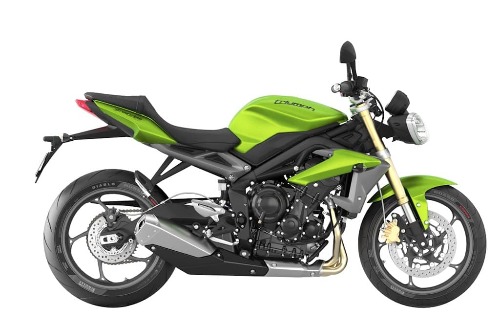 Den Mittelklasse-Streetfighter TRIUMPH Street Triple gibt es nicht nur in Carribean Blue, Phantom Black und Crystal White, sondern jetzt auch in einem Cosmic Green. (Foto: triumph)