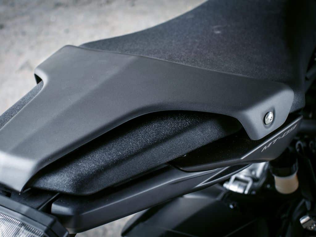 Neu hinzu gekommen zum Original Yamaha Zubehör für die MT-09 sind ein Alu Kettenschutz, eine sportliche Soziussitz Abdeckung, andere Yamaha Blinker, Kühlluft Meshgitter, ein wirklich tolles original Yamaha Sturzpad/Motorschutz und seitliche Kühlerabdeckungen.