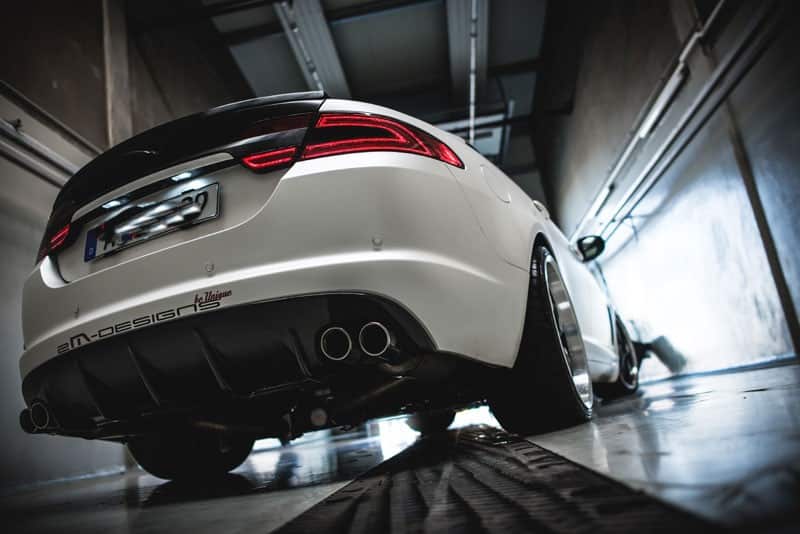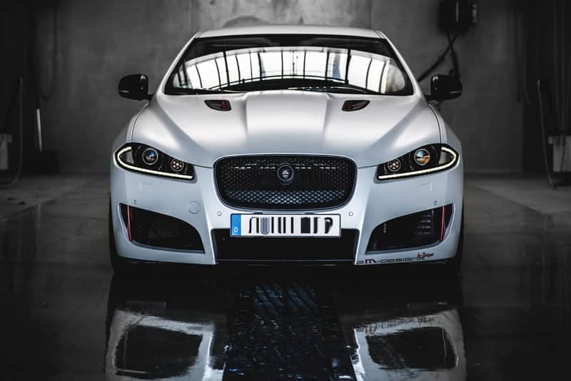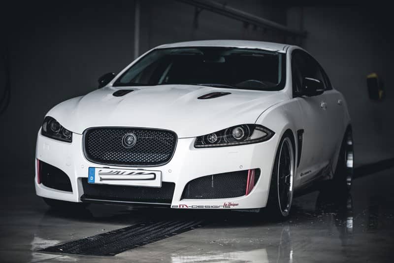 Vor der Fahrzeugvollverklebung durch die Augsburger Design-Agentur sind zunächst allerdings noch einige kosmetische Korrekturen vorgenommen worden. Der an das Design des Jaguar XFR-S angelehnte Frontspoiler bzw. gesamte Bodykit ist sofort lieferbar.