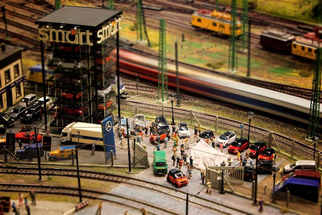 Insgesamt 90 neue fortwo und 60 neue forfour kommen auf der gesamten Anlage zum Einsatz – unter anderem im Airport Knuffingen, beim smart Händler sowie auf einem Autozug und einem Lkw-Transporter. Zugleich startet die erste car2go Flotte im Miniatur Wunderland direkt an der Elbe, in Hamburgs Speicherstadt. (Foto: Daimler AG)