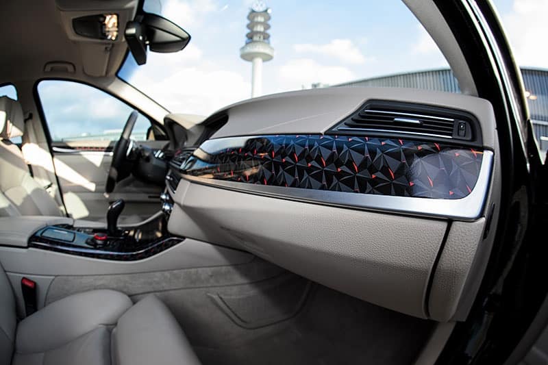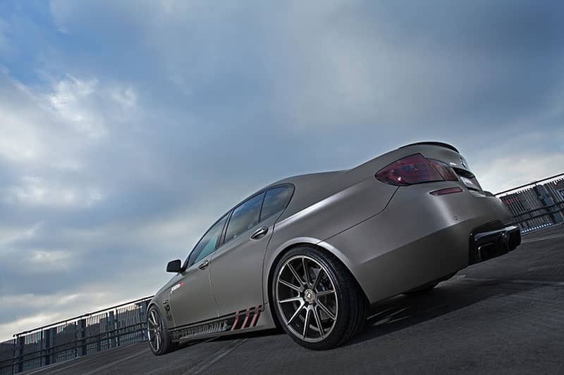 Der Komplettumbaupreis des hier präsentierten BMW 550i F10 V8 Bi-Turbo 4.4 mit M-Paket beläuft sich auf 15.000 €.