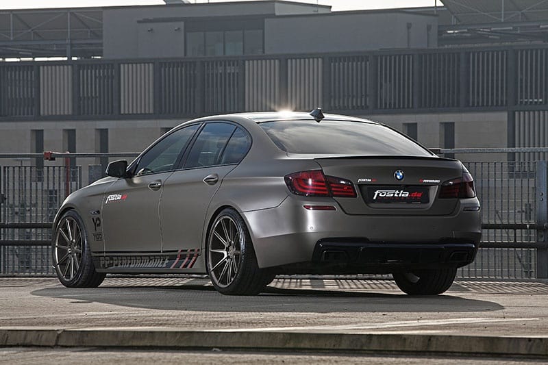 Apropos Performance: fostla.de ist Stützpunkt-Händler von PP-Performance für Hannover und ganz Norddeutschland! Deswegen musste auch das Triebwerk des Bayern einen PP-Performance-Umbau über sich ergehen lassen, der Stage-2-Modifikationen der Motorelektronik, Downpipes sowie die Aufhebung der Vmax für 4.299 € beinhaltet. Erreicht wird damit eine Leistungssteigerung von 408 PS (= 300 kW) auf 570 PS (= 419 kW) und ein Drehmomentzuwachs von 600 auf 800 Nm. Zum Vergleich: Der M5 F10 bringt „nur“ 560 PS (= 412 kW) sowie 680 Nm auf die Waage, allerdings zu einem deutlich höheren Gesamtpreis weit jenseits der 100.000 €.