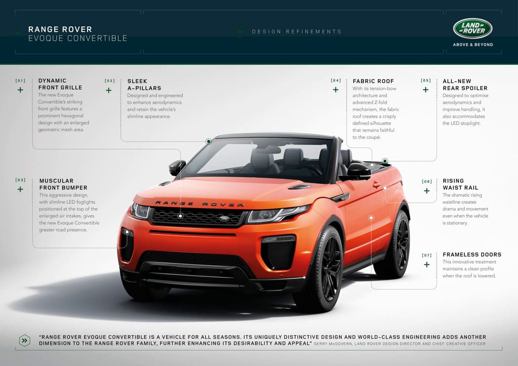 Der Range Rover Evoque ist ein Bestseller im Jaguar Land Rover Programm. Und obwohl es logisch erscheint, einen Bestseller in alle Richtungen mit diversen Motorisierungen etc. zu vermarkten, ist es dennoch ungewöhnlich ein waschechtes SUV als Cabrio auf den Markt zu bringen.