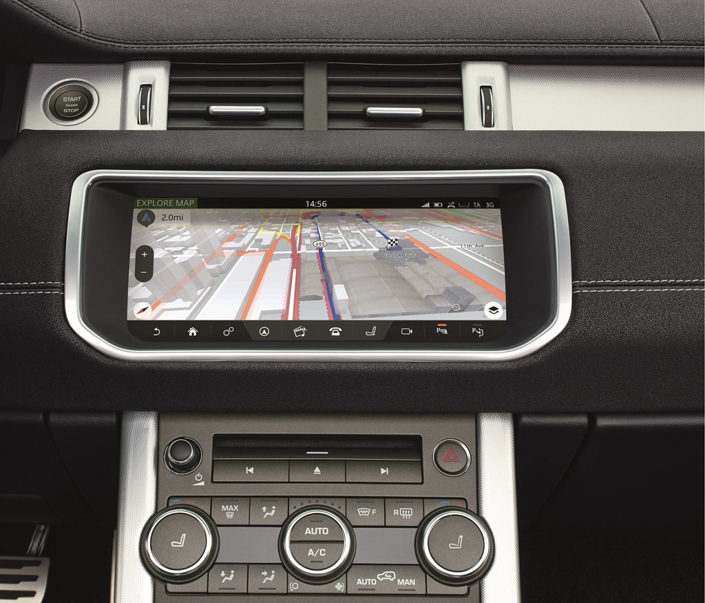 Im Innenraum gibt sich das neue Range Rover Evoque Cabrio gewohnt luxuriös. Über einen neuen 10.2 Zoll Touchscreen (InControl Touch Pro genannt), lassen sich nicht nur diverse Fahrzeugfunktionen aufrufen und steuern, sondern auch sämtliche Smartphone koppeln und integrieren. Features wie „door-to-door Navigation“, Wi-Fi Connectivity und ein Premium Sound System sind da selbstverständlich.