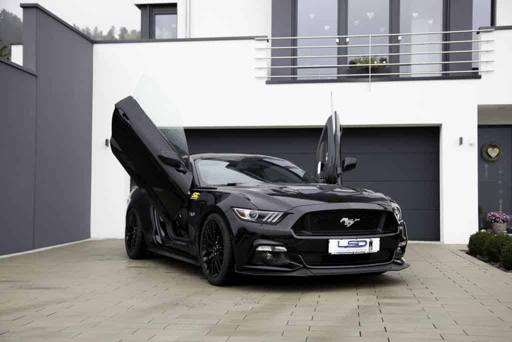 Der neue Ford Mustang ist bereits jetzt ein Bestseller und stand auch auf meiner Auto Einkaufliste für 2016. Bei mir ist es dann aber doch der Seat Leon ST CUPRA 290 geworden. Ganz einfach, weil der neue Ford Mustang nicht in meine Garage passt. Spaß beiseite. Wer sich den Mustang holt, sollte – falls nach dem Kauf noch etwas Kleingeld übrig ist – eventuell noch in Flügeltüren für den Ford investieren. Es sieht einfach geil aus! Der Preis für die Flügeltüren – bei LSD Doors – (sie werden nicht verliehen sondern verkauft!), liegt bei etwa 1.650.-€ (Foto: LSD Doors/Tuningpresse)