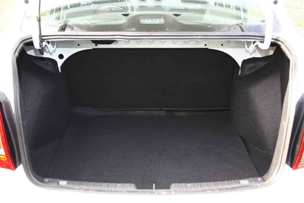 Der hohe Kofferraumdeckel ist ein wuchtiges Teil aus Blech, was zusätzlich noch durch die senkrecht stehenden Rückleuchten betont wird. Das haben die russischen Designer wohl auch eingesehen und dem Hinterteil des Kleinwagens beidseitig noch eine geschwungene Furche Richtung Rücklicht mit auf den Weg gegeben. Dass es sich um eine Verlegenheitslösung handelt, ist offensichtlich. Eine Chromspange hätte sicher mehr Wirkung, ohne gleich den Preis nach oben zu treiben.