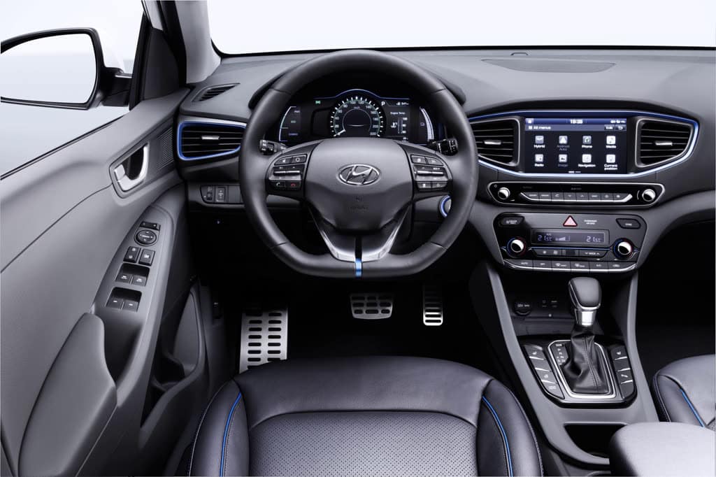 Gemeinsam mit liefern die Motoren 105 PS Systemleistung. Die 200 bar Hochdruck-Einspritzanlage des Hyundai IONIQ soll für geringen Verbrauch und niedrige Emissionen sorgen.