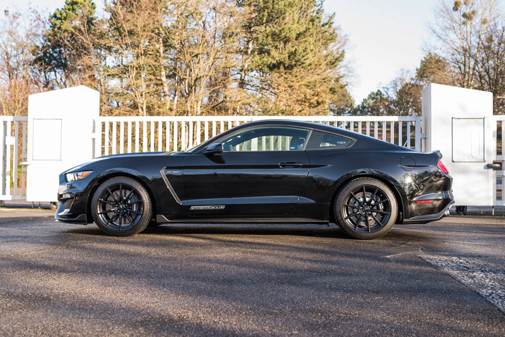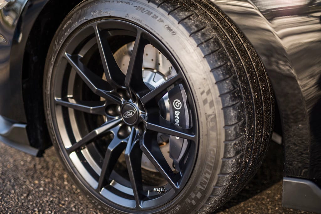 An die Antriebsräder vermittelt wird die Motorpower stets via eines manuelles 6-Gang-Tremec-Schaltgetriebes. Ein Torsen-Sperrdifferenzial unterstützt die Hinterräder bei ihrer Suche nach Grip. Apropos Grip: Um die Bodenhaftung der auf 10,5×19- und 11×19-zöllige Aluminiumfelgen aufgespannten Michelin Pilot Super Sport-Gummis der Dimensionen 295/35ZR19 und 305/35ZR19 zu optimieren, verfügt der Mustang Shelby GT350 serienmäßig über ein Sportfahrwerk mit adaptiven Stoßdämpfern.