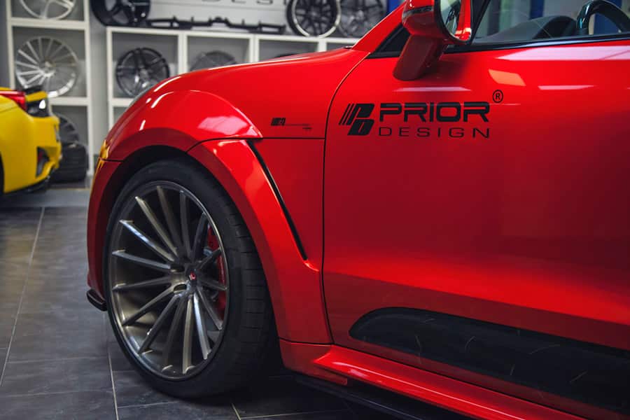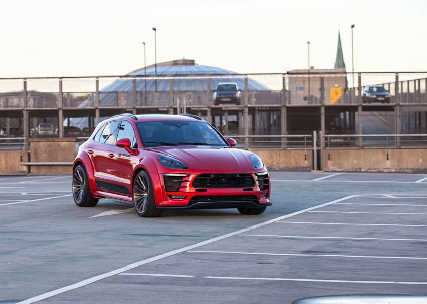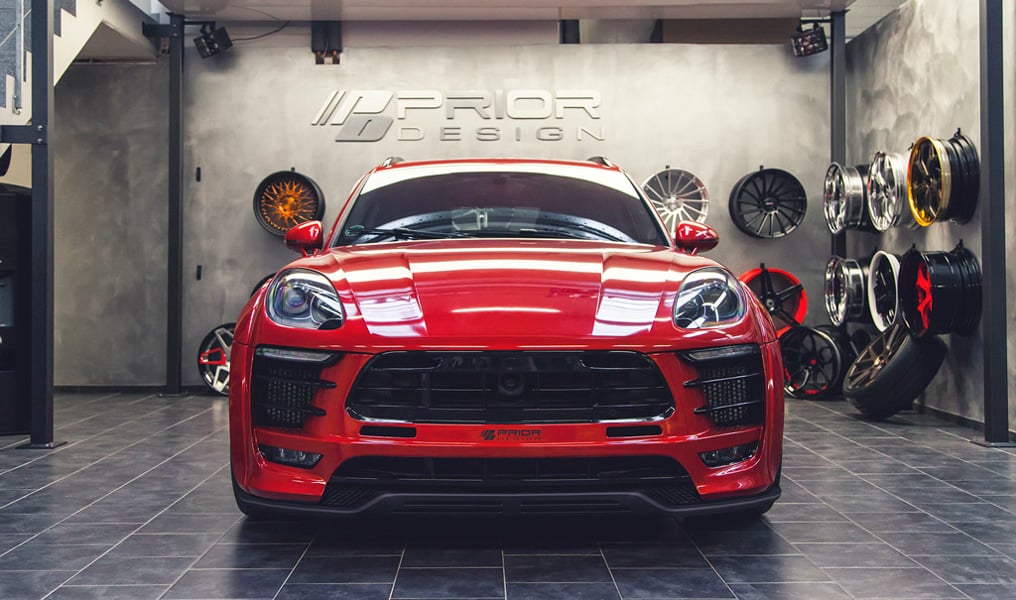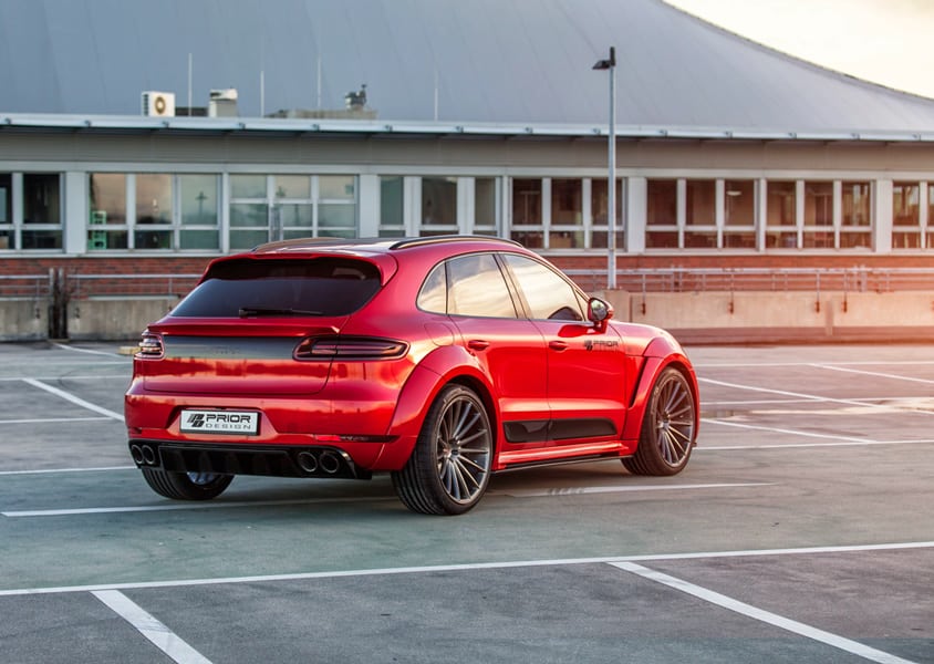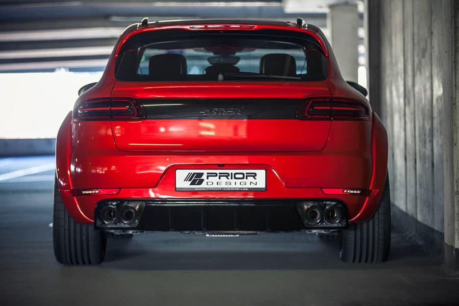 Das knackige Hinterteil des Macan gestaltet PRIOR-DESIGN mit einem Heckklappen- sowie einem Dachspoiler noch aufreizender.