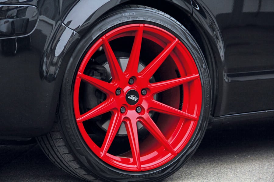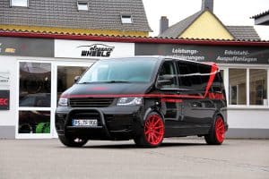 Die Suche nach passenden Felgen für den T5 gestaltet sich wegen der hohen Anforderungen des Busses in puncto Traglast stets schwierig. Für RFK Tuning war sie jedoch kein Problem, denn die hauseigene Elegance E1-Felge in ihrer Deep Concave-Variante besitzt eine extrem hohe Festigkeit und kann somit problemlos beim TÜV eingetragen werden.