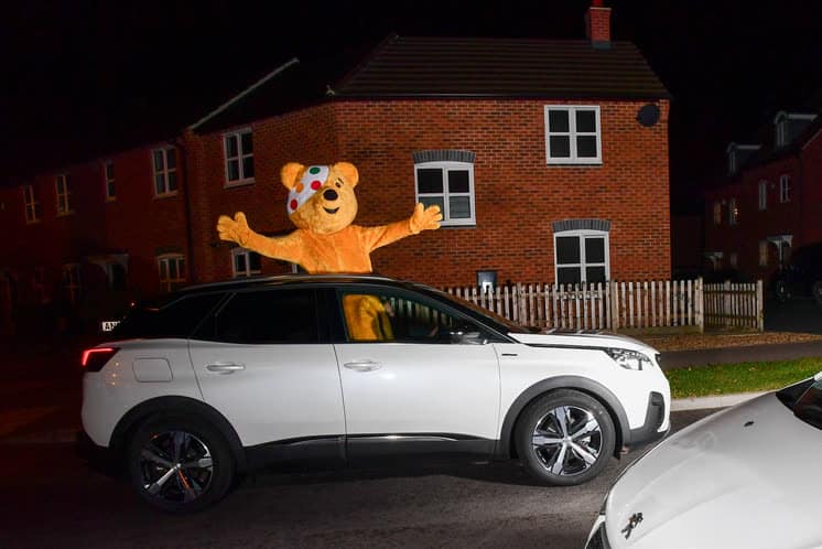 Vor ihren Haustüren und auf ihren Autos fanden sie das Maskottchen der Aktion – den Pudsey Bär. Natürlich nicht in Lebensgröße wie auf dem Foto – bevor jemand fragt! Aber das kleine niedliche Bärchen – so hofft man – mag doch sicher den einen oder anderen zu einer Spenden animieren. (Foto: Peugeot/np)