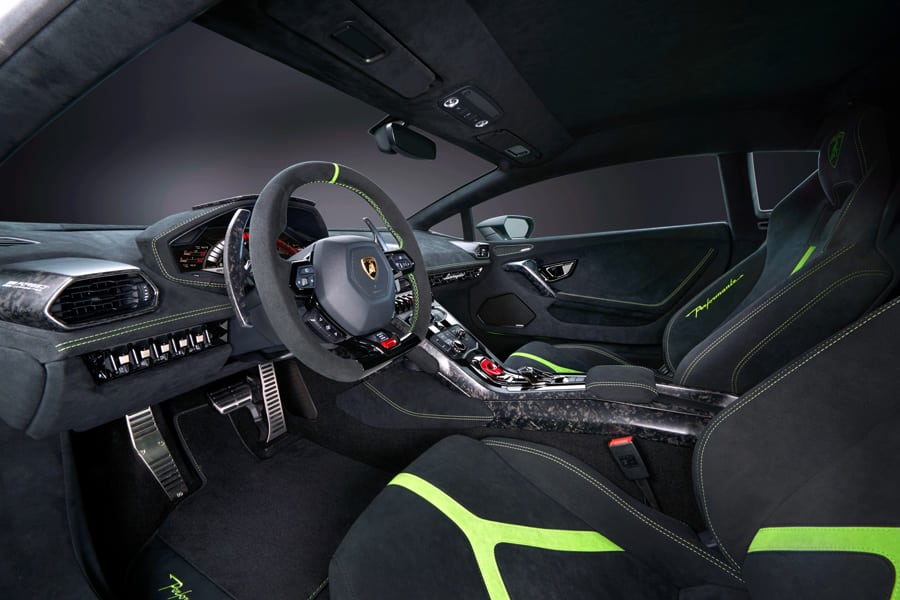 Das neue Cockpit-Layout unterstützt Apple CarPlay und dessen iPhone-Apps, einschließlich des Lamborghini Telemetrie Systems, mit dem der Fahrer seine eigenen Fahrleistungswerte aufzeichnen, wiedergeben und überprüfen kann. Und mit dem Lamborghini Ad Personam-Programm kann der Eigentümer den Huracán Performante nach seinem persönlichen Geschmack individualisieren.