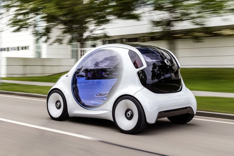 Autonomes Fahren ist in aller Munde. Mit dem Smart Vision EQ Fortwo geht der Hersteller eine Stufe weiter. Das autonom fahrende Konzeptfahrzeug holt seine Passagiere vor Ort ab.