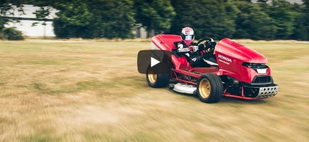 Der wohl schnellste Rasenmäher der Welt, arbeitet mit einem Honda Motorrad Motor, dem der Fireblade. Dieser bringt immerhin 189PS auf die Rasierklinge des Sitztraktors.