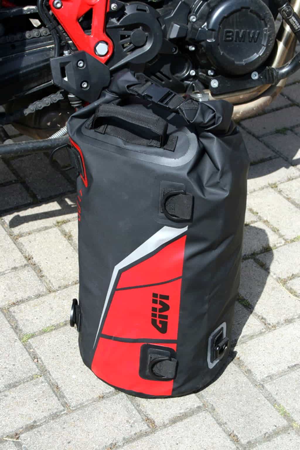 Die Motorrad Gepäckrolle Givi Easy-T im Test, ist im Gegensatz zu vielen anderen Artgenossen fürs Motorrad ein Top-Lader mit Rollverschluss und Steckschnallen an der einen Seite.
