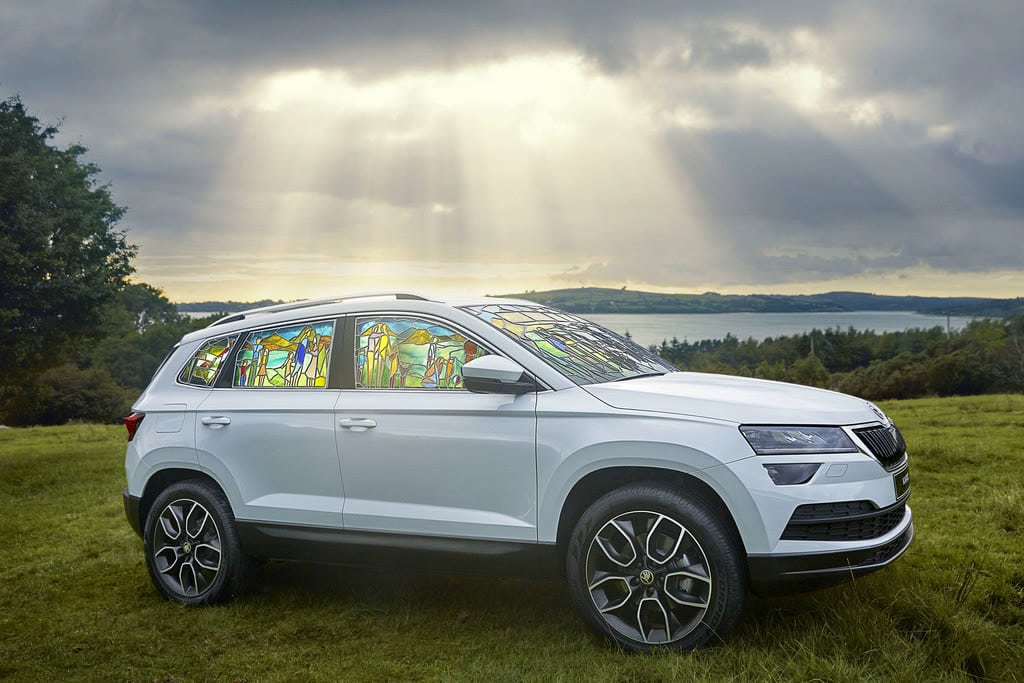 Anlässlich eines Papstbesuches in Irland – den Skoda mit Fahrzeugen unterstützte, wurden die Scheiben des tschechischen SUV durch in Handarbeit gefertigte, farbige Fenster ersetzt, wie man sie in Kirchen findet.
