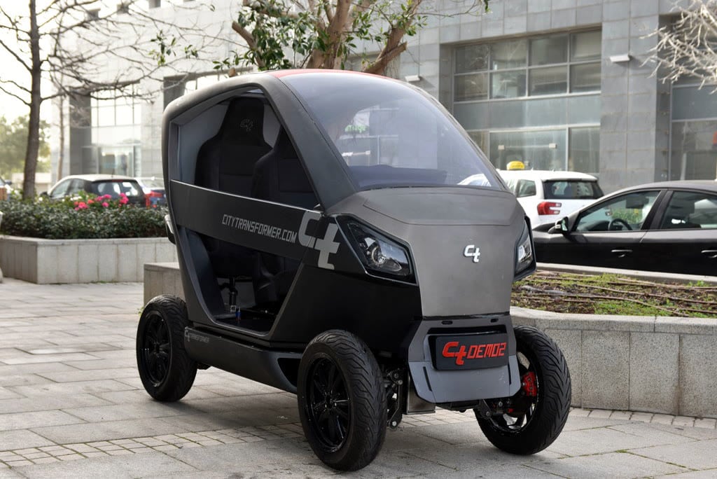 Was für ein Hammer. Kino Science-Fiction wird zur Realität – wenn auch vorerst nur im Miniaturformat: der erste echte Transformer für die Straße ist da. Sein Name: City Transformer! Die Breite des ein- und ausklappbaren, zweisitzigen Elektromobils kann per Knopfdruck auf gerade einmal einen Meter reduziert werden.
