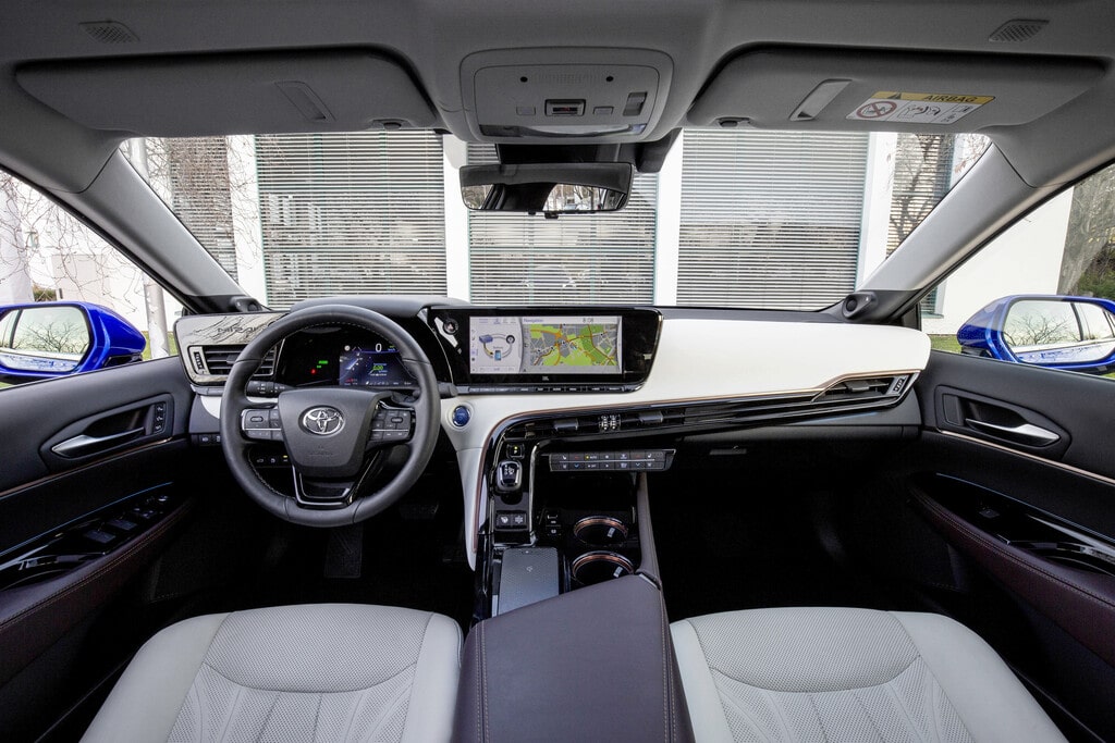 Größere Tanks sowie der effizientere Antrieb erhöhen außerdem die Reichweite. Waren es beim alten Mirai noch gute 500 Kilometer sollen es beim Neuen jetzt stolze 650 Kilometer sein. Da können konventionelle Elektroautos weiterhin nicht mithalten. Unbeeindruckt zieht der Brennstoffzellen-Toyota an ihnen vorbei und lässt sie einfach rechts liegen.