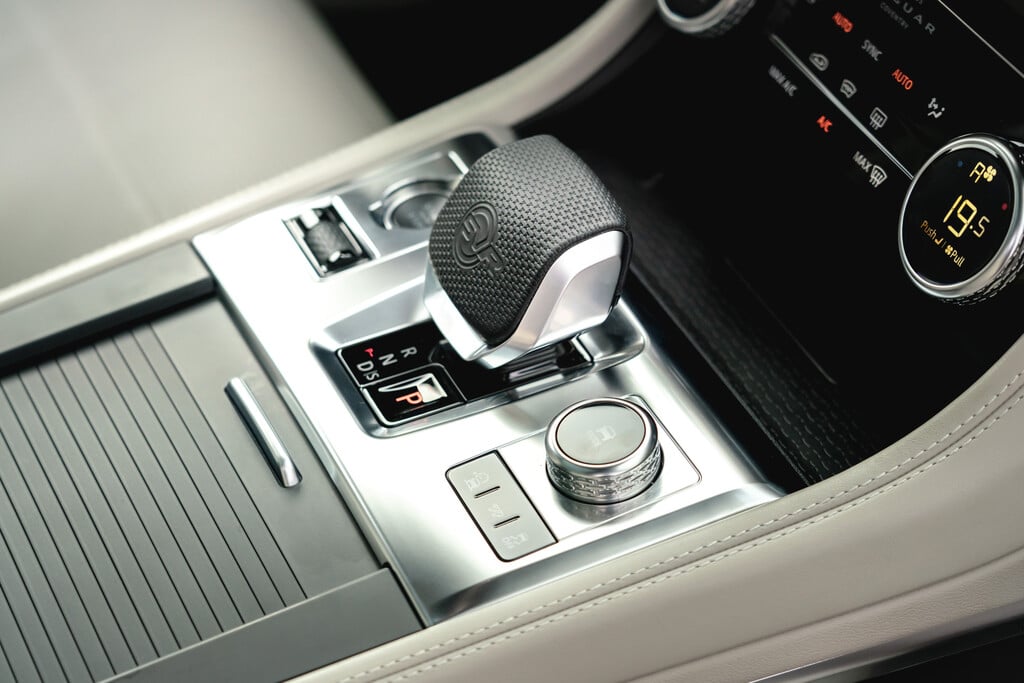 Ins Auge fällt beim Jaguar F-Pace P400e AWD Test außerdem der neue, nun wieder konventionell gestaltete Schaltknauf fürs Automatikgetriebe, der den bisherigen, beim Start spektakulär ausfahrenden Drehzylinder ersetzt.