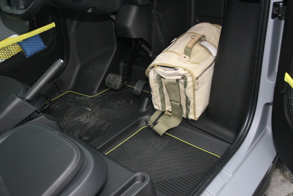 Gepäck im Opel Rocks-e wird vor dem Fußraum verstaut