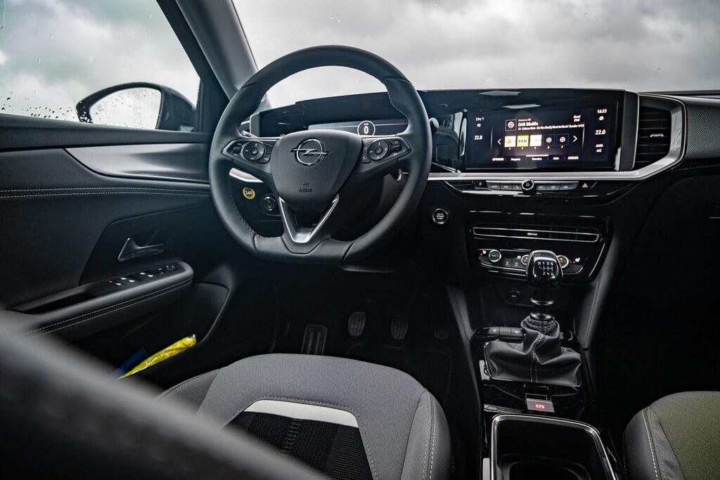 Gerade in der Kabine finden sich viele Elemente der Franzosen (PSA) wieder. Das Bedienteil der Klimaautomatik verrät die Nachbarn abermals. Damit ist die Nüchternheit der Amerikaner im Mokka endgültig dahin und eine neue Haptik zieht ein, die mehr Wärme und Jugend ausstrahlt: Lenkrad, Schalthebel und Gestühl gefallen auf Anhieb, das Design ist frisch und modern ohne zu überfordern.