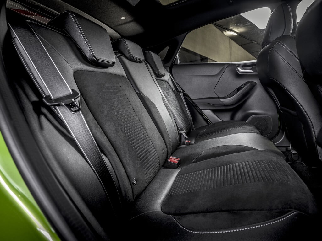 Die Sitze führen sicher und verfügen über eine verstellbare Lordosenstütze. Aber das Gestühl aus dem straffen Fiesta ST zu übernehmen, war eine Spur zu brutal. Recarositze im Stil des Focus MK2 ST wären der im Puma ST eher gewünschten Langstreckentauglichkeit zugute gekommen und hätten die Preispolitik nicht weit nach oben korrigiert.