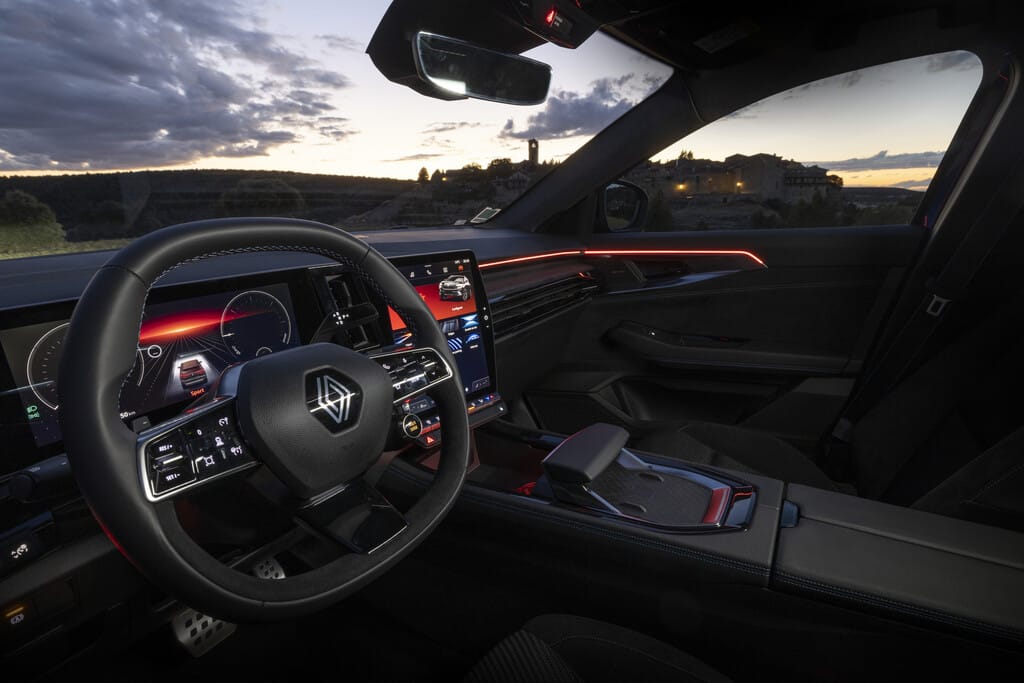 Im großzügigen Innenraum übernahmen die Kreativen des Konzerns viele Elemente aus dem elektrisch angetriebenen Mégane. Vor dem Menschen hinter dem Lenkrad breiten sich zwei Bildschirme mit einer Fläche von bis zu 774 Quadratzentimetern aus.