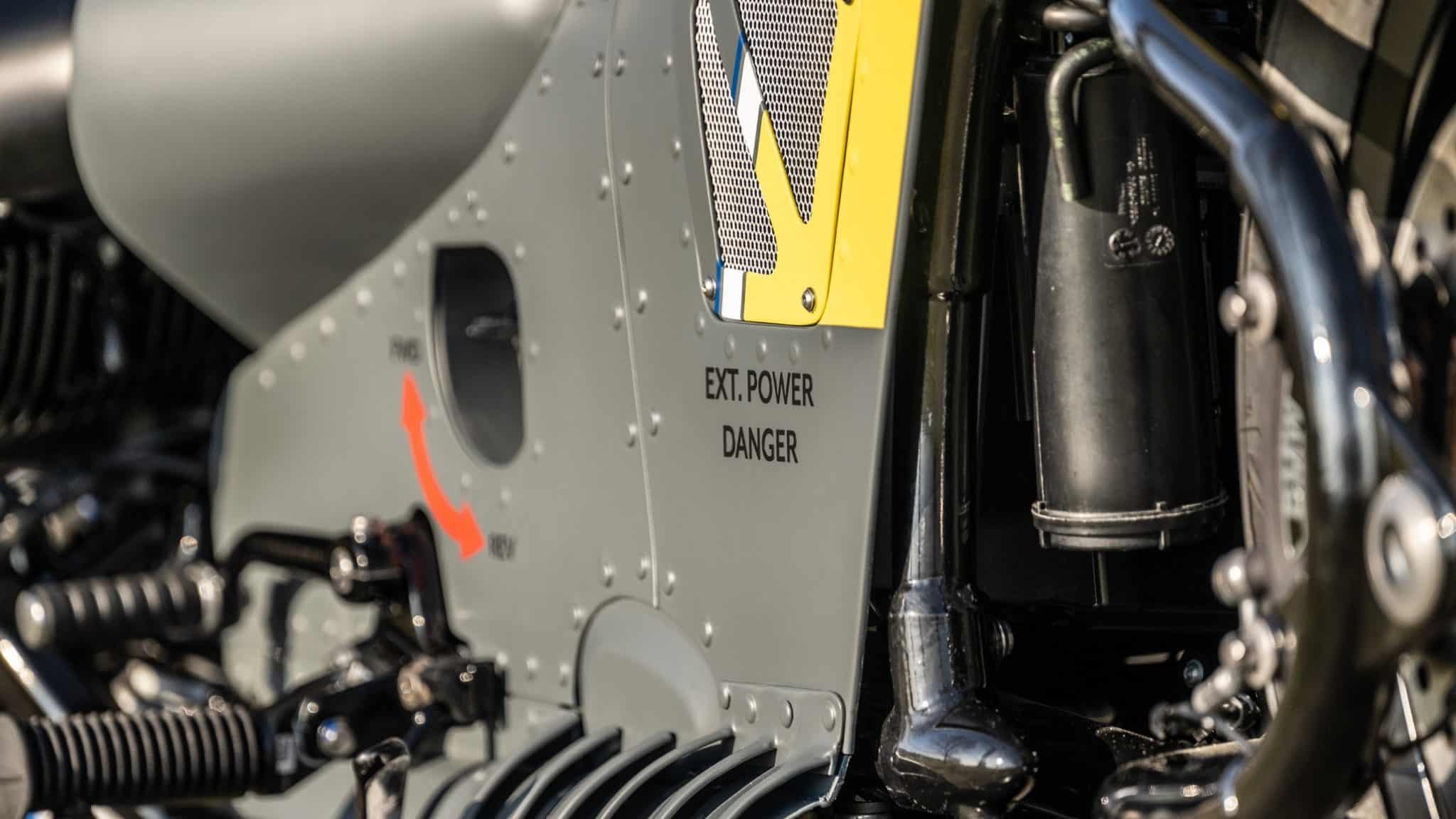Etwa das Ziffernblatt des in den Tank integrierten Tachometers, das an alte Cockpit-Instrumente erinnern soll oder auch Access Panels mit Schnellverschlüssen, wie man sie an vielen Flugzeugen findet.