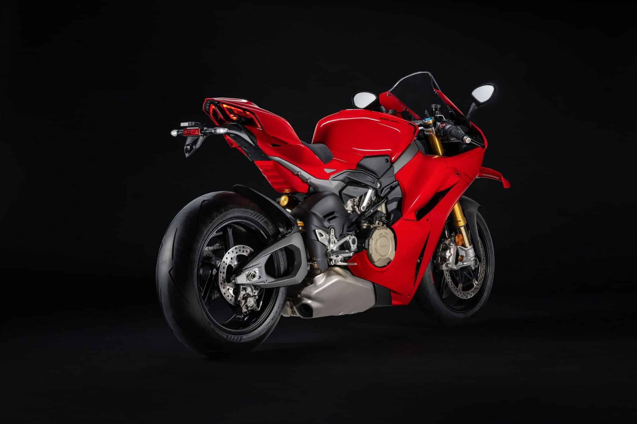 Mit dem Racing-Auspuff leistet die Panigale noch einmal zwölf PS mehr. Die Lichtmaschine und die Ölpumpe wurden von der R übernommen, während die Getriebetrommel aus der Superleggera V4 stammt. Der Quickshifter wurde ebenfalls optimiert. Das 6,9-Zoll-Display ist völlig neu, breiter und bietet auch einen „Track“-Anzeigemodus mit Datenerfassung auf der Rennstrecke und Farbgebung aus dem Moto GP.