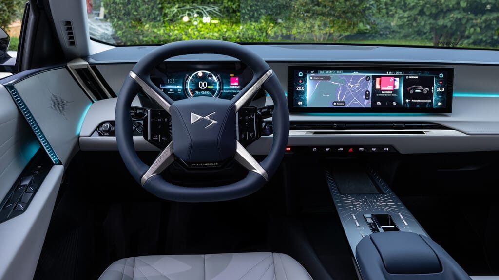 Der DS No.8 bietet drei Antriebsvarianten: Das Basismodell mit 169 kW (230 PS) und 74 kWh, eine mittlere Version mit 180 kW (245 PS) und 97 kWh sowie eine Topversion mit Allradantrieb und 257 kW (350 PS). Trotz einer auf dem Papier beeindruckenden WLTP-Reichweite von 750 km zeigt sich in der Praxis, dass bei konstanten 120 km/h eher rund 500 km realisierbar sind.