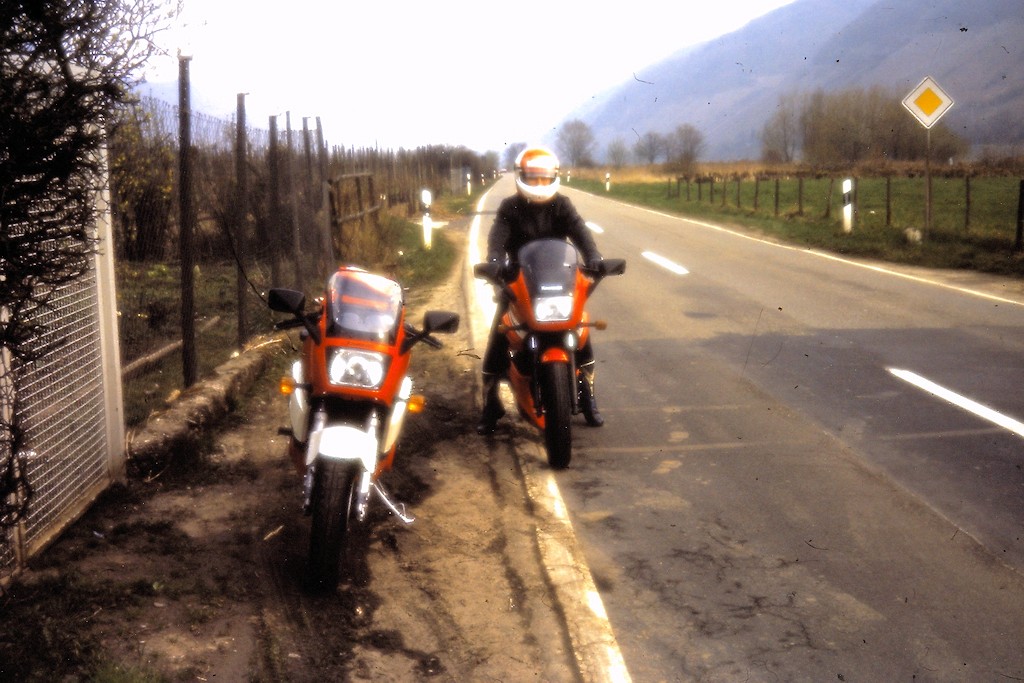 1982 unterwegs mit Kawasaki GPZ 600R und Kawasaki GPZ 500. Ich habe doch tatsächlich noch Dias von damals gefunden und natürlich promt digitalisiert. So etwas muss ja schließlich der Nachwelt erhalten bleiben! Zu allem bereit, zu nichts fähig. Aber wir hatten Träume! Das waren Zeiten… Motorradtouren mit einer Karte geplant – mehr hatten wir nicht. Mehr brauchten wir nicht. Und immer waren es die geilsten Motorradtouren der Welt!